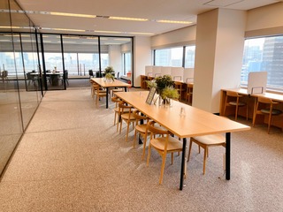 高層階からの眺望に大満足のコワーキングスペース。 東京湾や他のビルが目の前に広がり、とても作業が捗りました。 疲れた際に、同ビルに入居しているカフェのお菓子を購入できるサービスがあり(PayPay払い)、非常に助かりました。美味しかったです。